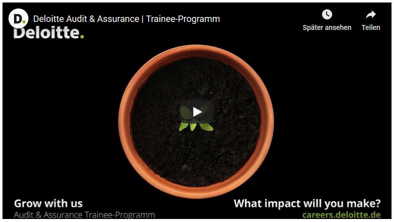 Die Dauer des exklusiven Trainee-Programms ist auf 2 Jahre, regelmäßig beginnend am 1. Oktober eines Jahres, festgelegt, wobei Sie von Anfang an eine unbefristete Festanstellung bei Deloitte erhalten. Im Laufe des Programms können Sie neben Ihrer Home Base Audit Industry & Internal Controls Assurance noch 2-3 der folgenden Bereiche von Deloitte kennenlernen: