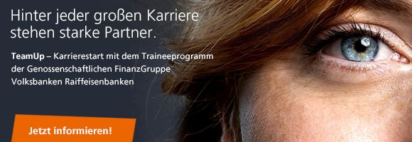 weiterlesenTeamUp ist das modulare Traineeprogramm der Genossenschaftlichen FinanzGruppe Volksbanken Raiffeisenbanken für Hochschulabsolventen, das von der DZ BANK in Kooperation mit Genossenschaftsbanken angeboten wird. Innerhalb kürzester Zeit werden Sie als TeamUp-Trainee Teil eines genossenschaftlich organisierten Teams. Sie haben starke Partner an Ihrer Seite und können 18 Monate lang Erfahrungen sammeln, Kontakte knüpfen und Schritt für Schritt Verantwortung übernehmen. Das Traineeprogramm im Überblick Das Programm startet am 1. Juni 2017 und wird ...
