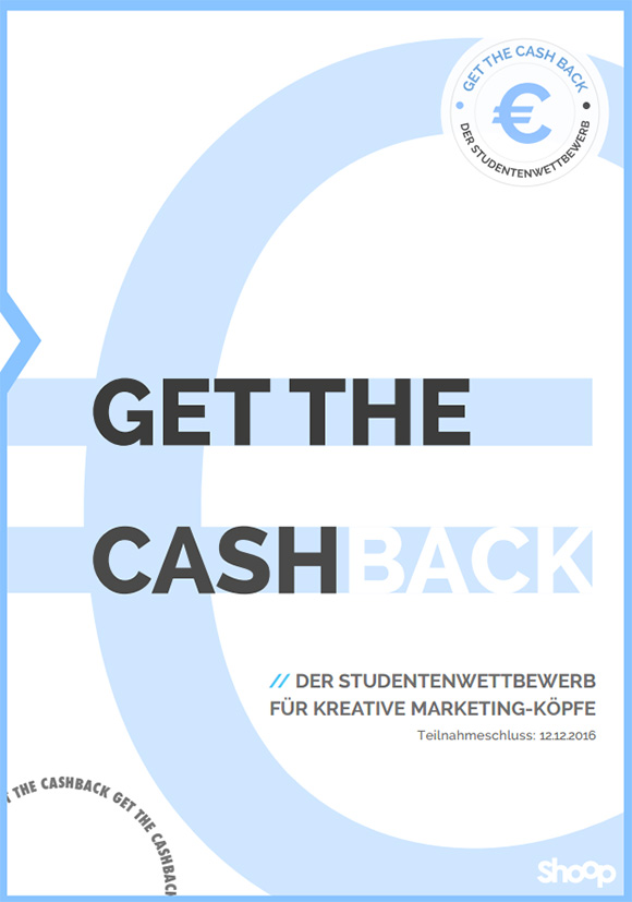 weiterlesenDas Cashback-Portal Shoop ruft Studenten der Fachrichtungen Wirtschaft, Kommunikation sowie Marketing dazu auf, ein Marketing-Konzept für das Cashback Prinzip zu entwickeln. Auf zwei DIN A4 Seiten soll die Idee, gerne auch mit Grafiken und Bildern, geschildert werden. Alle Einsendungen werden von einer Fachjury nach folgenden Kriterien bewertet: - Kosten-Nutzen-Faktor - Kreativität & Innovation - Festlegung konkreter Marketing-Ziele - Umsetzbarkeit Selbstverständlich warten auf die drei Bestplatzierten auch Sachpreise in Form von ...